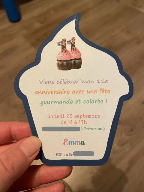 Ni une ni deux, mon cerveau s’est mis en ébullition : invitations en forme de cupcakes, et pourquoi pas un atelier cupcakes ? Je craignais qu’à 11 ans, les enfants soient trop grands pour un anniversaire « animé » par un parent, mais finalement j’ai été surprise par leur enthousiasme : ils ont tous adoré !