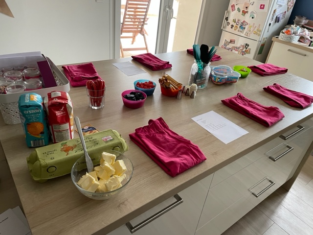 prévoir des tabliers pour mettre les enfants dans l’ambiance … et pour les protéger des tâches !