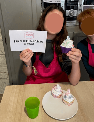 Ensuite nous avons procédé au vote. J’avais prévu 2 récompenses : le prix du plus beau cupcake et le prix du cupcake le plus original (décoré avec des bonbons!). Et c’est drôlement bien tombé, chaque équipe a gagné un prix !