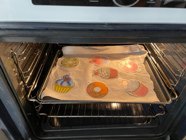 Cette activité m’a surprise elle-aussi : je craignais qu’ils soient trop grands pour faire ce bricolage, et finalement ils ont adoré (surtout les filles). Pour ceux qui ne connaissent pas cette activité, il s’agit d’un dessin sur une feuille plastique recouverte d’une surface facile à colorier (on peut aussi faire des coloriages libres, ou empreintes de mains, etc… On place ensuite les formes au four (4 minutes à 160°C), et elles fondent, rétrécissent, et deviennent dures. Parfaites pour faire un porte clé ou une déco de trousse ou sac à mains. Les couleurs pâles des crayons de couleurs deviennent vives après la cuisson, et le résultat est toujours sympa. Un kit similaire peut s’acheter ici.