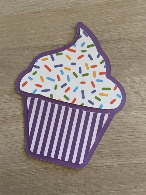 Une jolie forme de cupcakes créée avec le logiciel et la machine Silhouette Portrait, et déclinée en plusieurs couleurs, pour que ce ne soit pas trop féminin, sachant que 3 garçons étaient invités. Elle peut également se découper à la main, comme il n’y a que 3 pièces à assembler.