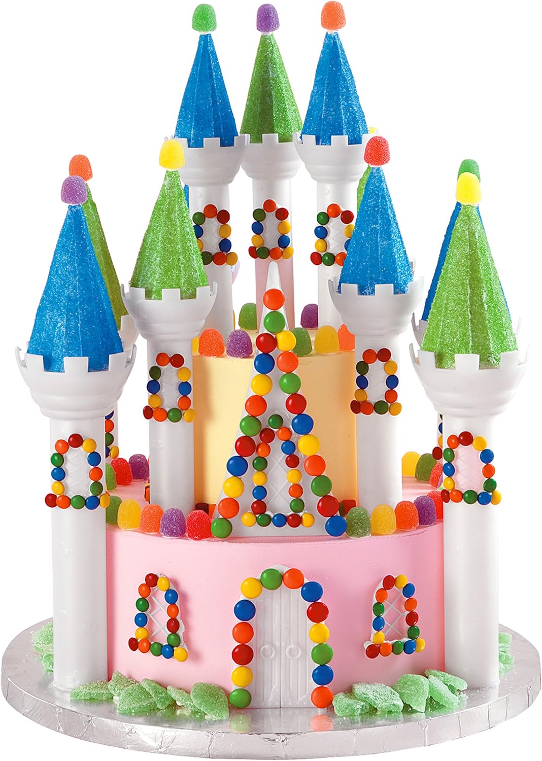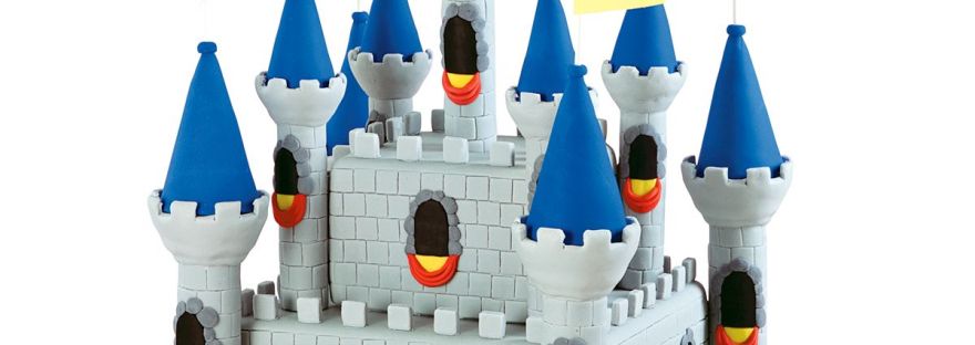 Un gâteau en forme de château… si l’on a du temps : utilisez notre kit déco de 32 pièces pour transformer un simple gâteau rond ou carré en château, disponible ici. Les accessoires en plastique peuvent être recouverts de pâte à sucre ou pâte d’amandes pour créer un univers spécifique :